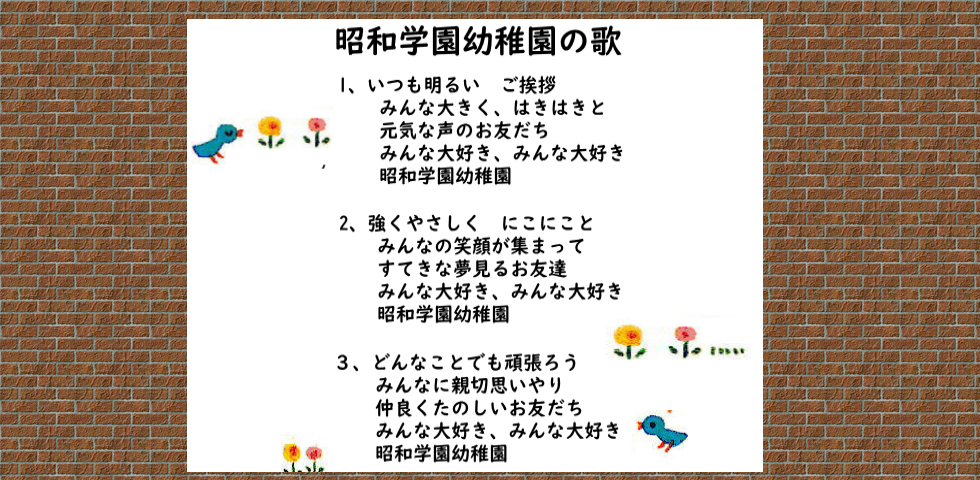 昭和学園幼稚園の歌は、幼稚園の夏季研修の中で職員が作詞作曲し生まれたものです。この昭和学園幼稚園の歌は、幼稚園の交流活動の中で歌っています。